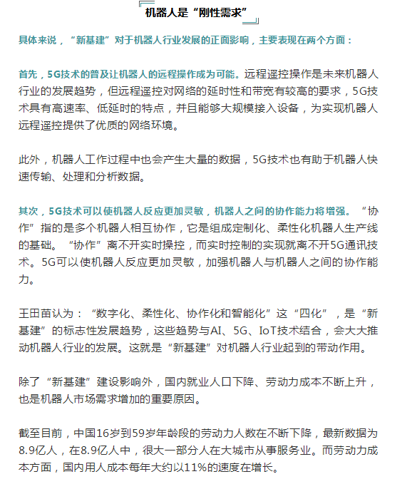 同時(shí),國(guó)家“新基建“政策的重磅推出,也為機(jī)器人行業(yè)發(fā)展指明方向。