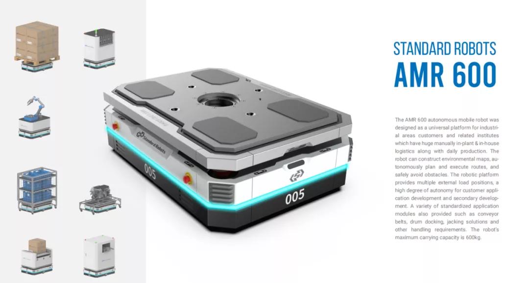斯坦德本次獲獎的AMR600作為一款標準化工業級移動機器人,柔性智能的特點將為客戶進一步賦能工業物流搬運場景。通過機器人的自主行為為客戶處理多達600公斤的有效載荷,以取代人力來提高工作的容量和效率。在復雜的人機環境下,足夠的控制邏輯傳感器保證了高級的安全性能,工業設計從風格到功能都顯示出安全性和可靠性,人機工程學從每個細節實現,為每個用戶提供方便。建環境地圖,自主規劃和執行路線,自動避開障礙物。為平臺提供多個外部負載位置,為客戶應用開發和二次開發提供了充足空間。