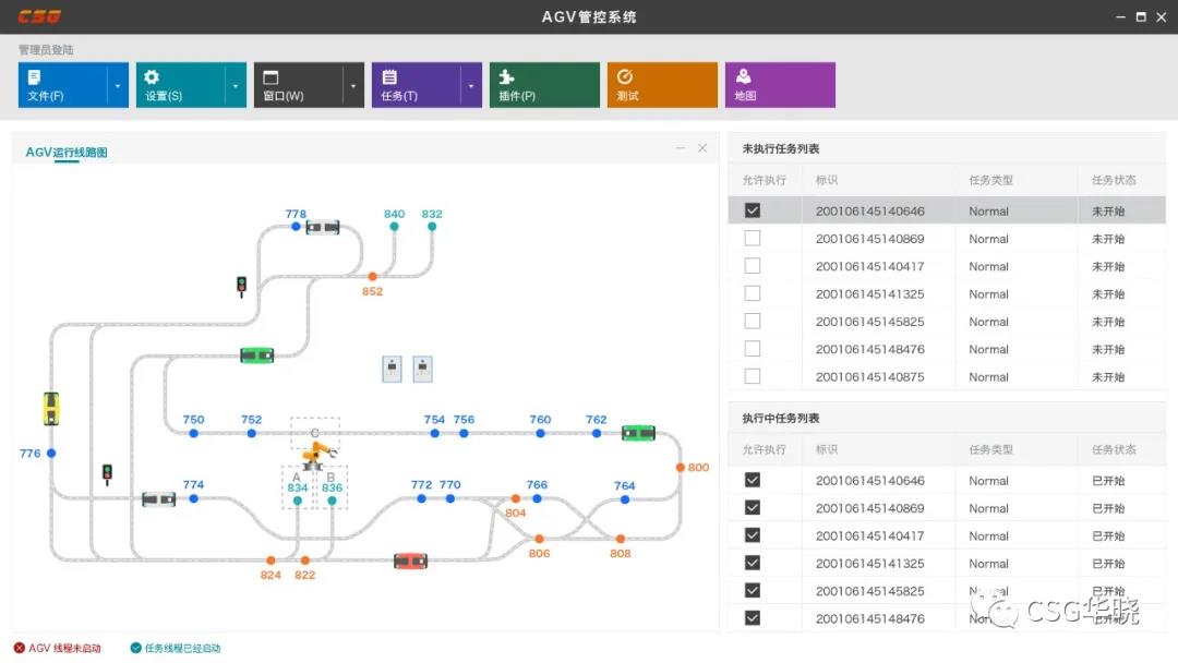 智能管控云平臺的可視化界面,便于客戶隨時隨地監(jiān)控AGV,對全廠AGV情況“了然于心”。更貼心的是,CSG華曉會根據(jù)客戶工廠的實際情況以及項目需求,提前在云平臺中預設好AGV的運行路線與工作任務。簡單的一鍵設置,即可保證叉車AGV 24小時不停機。