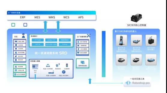 (3)在本次解決方案中,通過統(tǒng)一資源調(diào)度系統(tǒng)SRD對(duì)接用戶的MES系統(tǒng),并在倉庫發(fā)料區(qū)和產(chǎn)線工位都配有呼叫PDA,當(dāng)人工工位有運(yùn)輸需求時(shí),通過手持PDA進(jìn)行呼叫,調(diào)度系統(tǒng)便會(huì)立即響應(yīng),通過基于AMB的潛伏牽引機(jī)器人完成倉庫與產(chǎn)線的物料運(yùn)輸;通過基于AMB的頂升輥筒機(jī)器人完成車間產(chǎn)線對(duì)接。