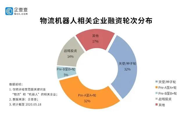 長遠(yuǎn)來看,當(dāng)前智慧+物流現(xiàn)在依然處于早期階段,目前,企業(yè)的融資進(jìn)程大多處于剛剛起步階段。企查查數(shù)據(jù),近百家物流機(jī)器人企業(yè)獲得資本助力,其中,大部分企業(yè)處于天使輪到A+輪融資階段,獲天使/種子輪投資的企業(yè)與獲得Pre-A輪至A+輪投資的企業(yè)占比相當(dāng),均占所有企業(yè)的32%。螞蟻金服、元和控股、科大訊飛、中興創(chuàng)投等明星資本紛紛入場物流機(jī)器人領(lǐng)域。