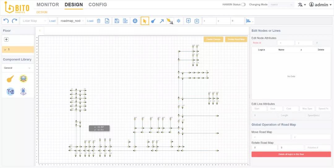GH-System采用業(yè)界領(lǐng)先的路徑規(guī)劃和交通管制算法,可輕松應(yīng)對多地圖、單行雙向車道、死鎖等挑戰(zhàn),支持二維碼、磁條、激光SLAM等不同導(dǎo)航方式AGV,能夠同時調(diào)度百臺級別數(shù)量的AGV協(xié)同工作。北向接口支持對接ERP、MES、WMS等高層級系統(tǒng),南向接口支持不同廠家的AGV和各種現(xiàn)場設(shè)備(PLC、呼叫器、電梯、提升機等),還可支持現(xiàn)場業(yè)務(wù)和AGV模擬,能夠預(yù)先展示和驗證前期方案設(shè)計,提升項目質(zhì)量。